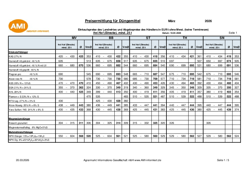 Beitrag lesenPREISE + Entwicklung DÜNGER Monat März 2026