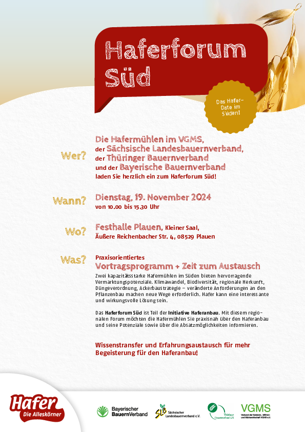 Einladung und Anmeldung HAFERFORUM am 19.11.20224 ab 9.30 Uhr in der Feasthalle Plauen