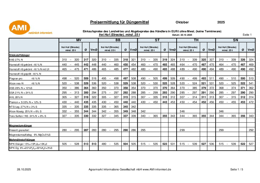 gesamte Preisliste und Lageeinschätzung Dünger OKTOBER 2025 herunterladen